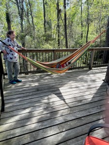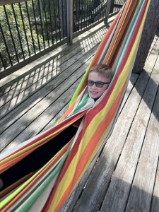 Somewhere in the afternoon, William and Jamie had discovered a hammock stored in a big box behind the living room sofa–and it was just pure golden luck. What a wonderful surprise!