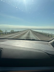 But then, we got in the car and our sweethearts commented on everything. EVERY detail that zipped by on the road. Every cloud, all the signs, a car, the different trees, and THEN they moved on to round two. You know the one, where they start rhyming every single word. And THEN there was the bridge. Yes, we were about to cross part of this massive lake by bridge.